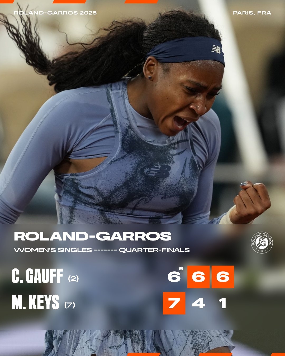 06月04日讯 法网女单1/4决赛下半区首场较量,2号种子高芙以6-7(6)/6-4/6-1逆转击败同胞7号种子凯斯,职业生涯第三次闯入罗兰-加洛斯四强。